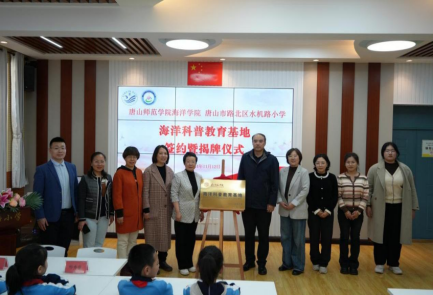仪式伊始,唐山市水机路小学党支部书记、校长李彩霞强调,海洋科普工作对于水机路小学学生海洋意识培养非常必要,是丰富学生课余活动、拓展学生海洋知识视野的重要途径。太阳成集团tyc33455ccwww党总支书记金佳勇介绍了太阳成集团tyc33455ccwww的发展历史以及人才优势,表达了太阳成集团tyc33455ccwww对海洋科普事业的满腔热忱。随后,双方签署海洋科普教育基地合作协议并揭牌。
