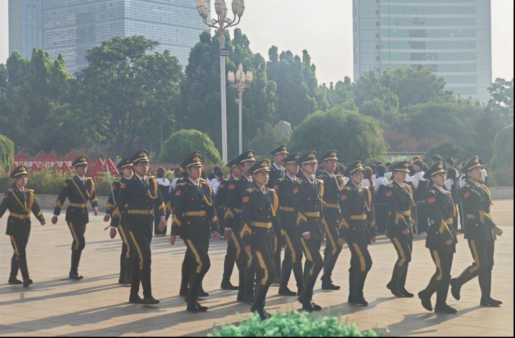 7时整,国旗护卫队迈着铿锵步伐护送国旗入场。当《义勇军进行曲》响彻校园,全体师生庄严肃立,向缓缓升起的五星红旗行注目礼。主持人强调,这抹“中国红”不仅是先辈热血的见证,更象征着当代海洋人将爱国情融入科研实践的决心——从早期海洋测绘工作者的艰辛探索,到如今深海探测、极地研究等领域的突破,一代代海洋人始终以国旗为信仰坐标,在蓝色国土上书写奋斗篇章,飘扬的国旗如同深海中的荧光,照亮着海洋科学的探索之路。