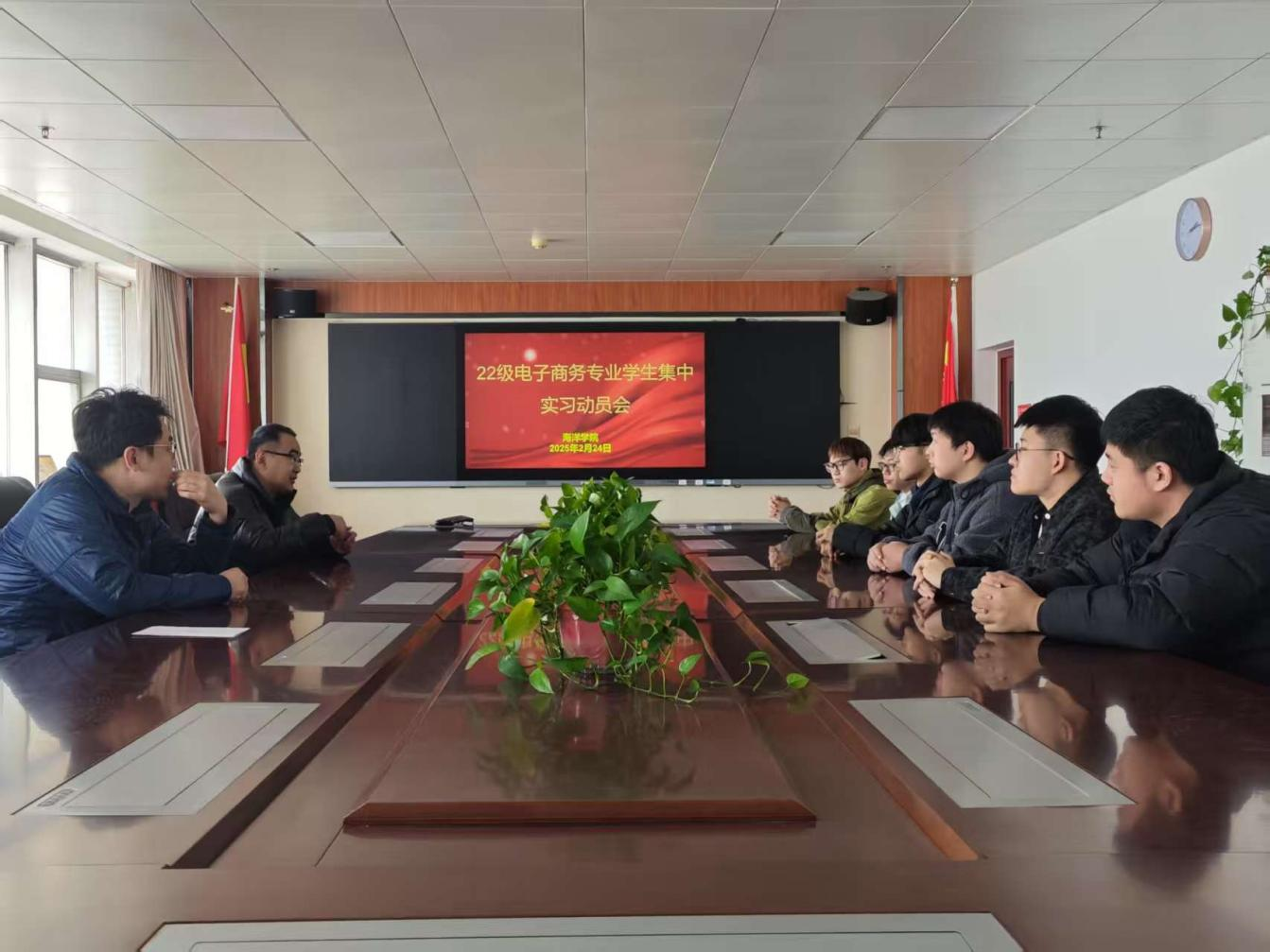 2月24日14时,电子商务专业2022级集中实习动员大会于太阳成集团tyc33455ccwww会议室召开。会议由电子商务教研室主办,2022级参加本学期集中实习的学生及指导教师田博文共同参会,就集中实习相关事宜进行工作部署。